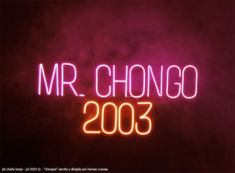 De qué se trata? Está por terminar el año 2003 y en la televisión sucede el clásico de la caja boba, la elección del “Míster Chongo" de cada año. Este año Mike, "el presentador", nos invita a conocer a los cinco participantes que deberán pasar las pruebas más exigentes para llegar al tan ansiado premio. La coronación como rey significa para cada uno de ellos algo distinto pero muy deseado y harán lo que sea por llegar a su meta. Durante la hora y media que dura el programa veremos lo que sucede en el estudio y también lo que pasa detrás de bambalinas, allí conoceremos a fondo a los concursantes y seremos testigos de su potencial y de sus debilidades. Todo sea por ganar.