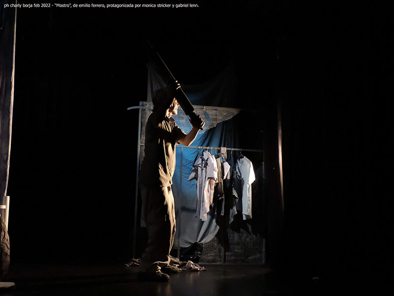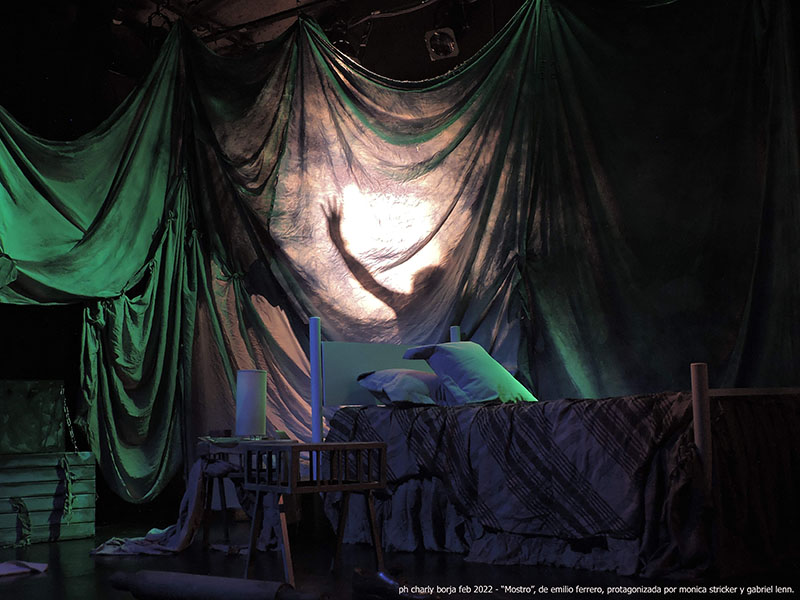 De qué se trata? De qué se trata? Síntesis argumental "MOSTRO" es una obra de teatro, que nos conecta con la infancia porteña de los años "70", describiendo nuestros propios monstruos internos, de ser nosotros mismos analizando al monstruo que vive debajo de la cama mientras arriba intenta dormir el niño o niña que fuimos. Tratando temas como la violencia intrafamiliar, mencionando aquellos juegos en la vereda, como las carreras de autitos con masilla y cucharita, el celo de las niñas y sus muñecas, las figuritas del mundial, los éxodos hacia "la costa" en las vacaciones y las cartas escritas a mano que algún cartero arrimaba a los barrios junto a la esperanza de los enamorados . Síntesis argumental "MOSTRO" es una obra de teatro, que nos conecta con la infancia porteña de los años "70", describiendo nuestros propios monstruos internos, de ser nosotros mismos analizando al monstruo que vive debajo de la cama mientras arriba intenta dormir el niño o niña que fuimos. Tratando temas como la violencia intrafamiliar, mencionando aquellos juegos en la vereda, como las carreras de autitos con masilla y cucharita, el celo de las niñas y sus muñecas, las figuritas del mundial, los éxodos hacia "la costa" en las vacaciones y las cartas escritas a mano que algún cartero arrimaba a los barrios junto a la esperanza de los enamorados. En 2019, resultó ganadora del 1er premio del concurso de dramaturgia de humor del Cigomático Mayor, organizado por la Dirección de Cultura de Santa Rosa La Pampa. Cuenta con el apoyo de Proteatro.