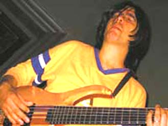 Torres re-copado tocando su bajo y tapa CD. |
