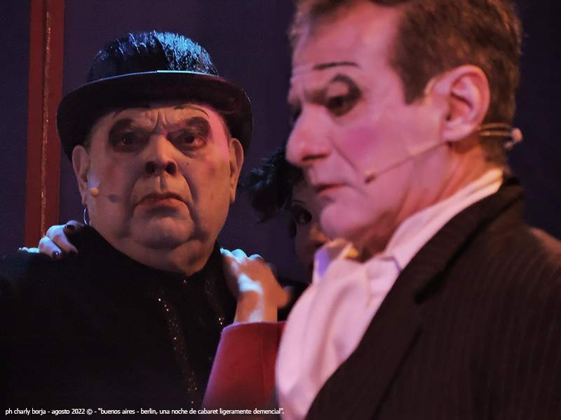 Hemos asistido a un agradable espectáculo creado por don Antonio Leiva, la recreación sobre un mismo espacio de dos ambientes no tan diferentes entre sí, porque en lo que respecta a la decadencia sufrida en Berlín y en Buenos Aires en esos momentos de los años 1930 ambos lugares vivían desesperanzas similares siendo la más bizarra y mortal la experiencia europea sin lugar a dudas, allí se palpaba la muerte en cada noche de cabaret.