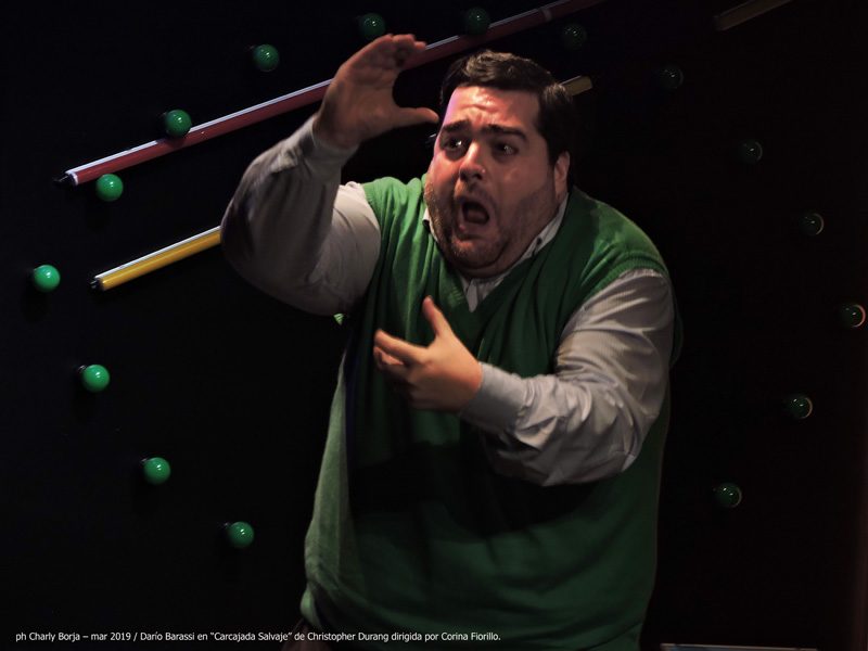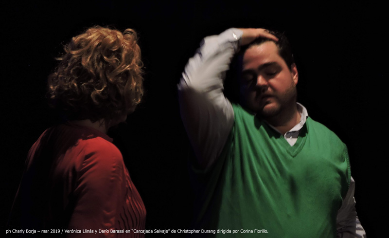 La opinión de charly borja - MARZO 2019 © “Carcajada Salvaje” es un espectáculo bien dirigido por Corina Fiorillo, que mixtura el stand-up con la comedia reidera, montada en una escenografía e iluminación minimalista en donde los colores van marcando el paisaje urbano. Tanto Verónica Llinás como Darío Barassi se lucen en sus performances individuales como en dúo, para entender esta comedia hay que tener muy en cuenta que ambos actores componen dos personajes bastante pirados, que sufren y gozan como cualquiera de nosotros las vicisitudes propias de vivir en la gran jungl de cemento llamada ciudad en donde nadie se fija en el prójimo y cuando lo hace es para defenestrarlo por cualquier causa, justificado o no, el tema es que molesta.