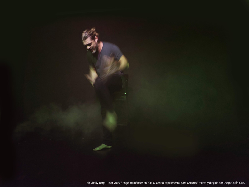 La opinión de charly borja - marzo 2019 © Hemos disfrutado de una experiencia innovadora dentro de los espectáculos stand-up que tanto pululan en la ciudad de Buenos Aires, se trata de la nueva creación del inquieto Diego Corán Oria llamada “CEPO - Centro Experimental para Oscuros” también dirigida por él en donde el joven Angel Hernández en excelente performance nos brinda una demostración de actuación, canto y destreza física en su extraño personaje llamado Angel para contar su historia a través de diferentes vivencias que le va exigiendo el enigmático proyecto CEPO. Munido de una batería lumínica que presenta la característica de no estar visible al espectador sino que se representa a través de contraluces y proyecciones sobre paredes de tela haciendo más vibrante los episodios que Angel nos quiere contar, constituyendo una imaginativa puesta.
