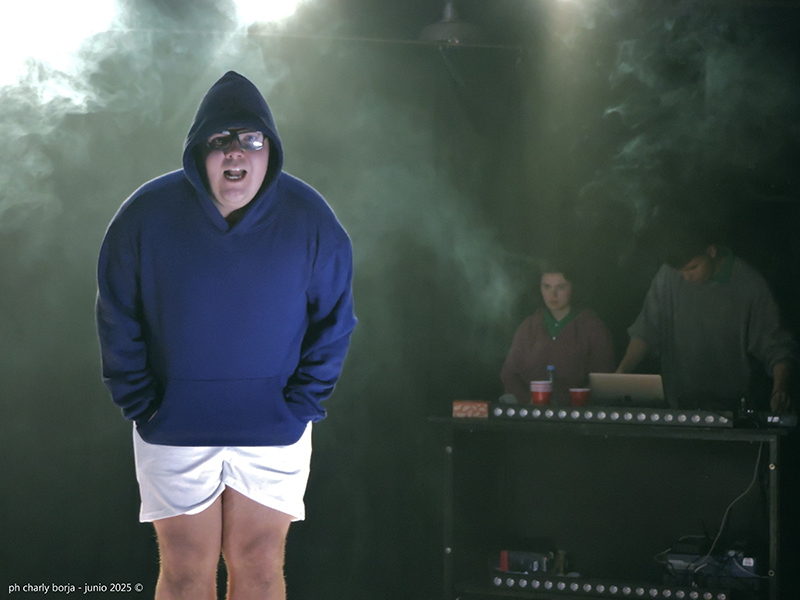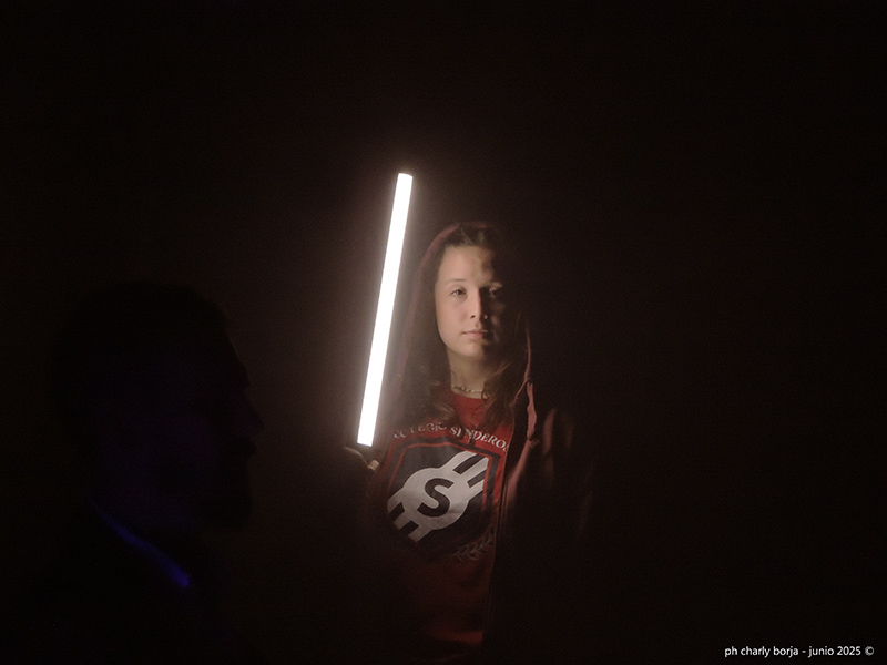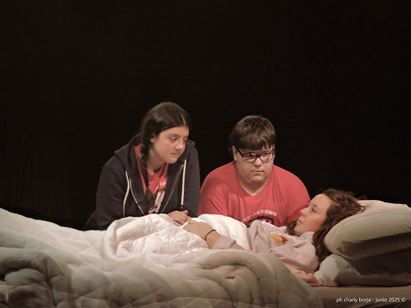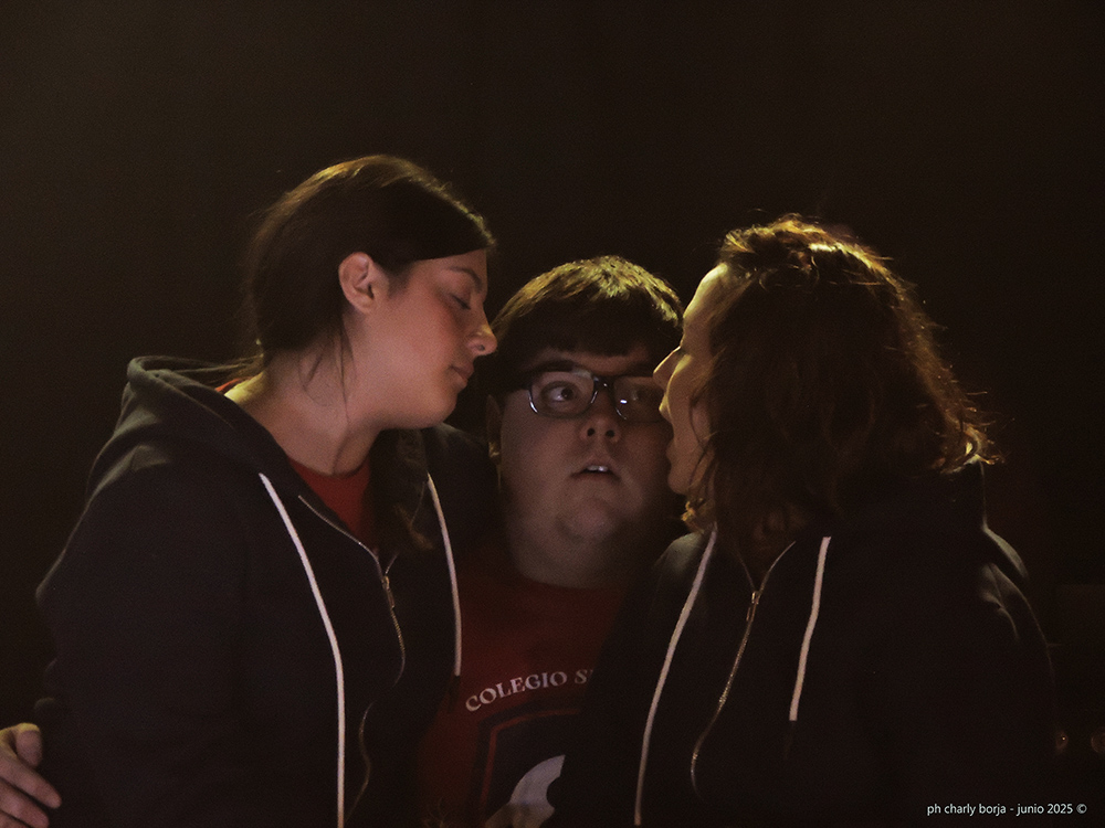 Nos llamó la atención lo amalgamado del equipo de producción, lo bien que coordinan iluminación, sonido, coreografías para conformar diferentes cuadros que se van sucediendo minuto a minuto en movimientos que transforman la escena vivazmente, todo a pulmón sin máquinas robóticas que mueven escenografía e iluminación, ni apelando a la tan usada hasta el hartazgo famosa Inteligencia Artificial, aquí es todo lo contrario, es un equipo muy joven y comprometido conque todo salga bien y llegue a buen puerto con la obra.