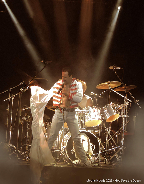 La opinión de charly Borja – abril 2023 © Desde sus inicios allá por 1998 hasta la fecha, Dios Salve a la Reina no hizo más que cosechar éxitos en muchos países del mundo con sus shows que, año a año fue perfeccionando en lo visual primordialmente. Para todo aquel que apreció y aprecia la inmortal música del grupo inglés Queen, no hay nada mejor que “vivir la experiencia Dios Salve a la Reina en vivo”, por impronta visual y sonora y la presencia de Pablo Padín como el gran Freddie Mercury, chapó en sus villantes performances. Para muestra del impresionante crecimiento de la banda sólo basta un botón, notamos a las claras en la puesta en escena de “Bohemian Rhapsody”, donde hace algunos años atrás la sofisticada ingeniería musical y vocal operística de este emblemático tema no la hacía en vivo en algunos tramos, ahora sí, se puede gozar totalmente de la magnitud de esa obra de arte de Queen , interpretada y ejecutada en vivo en toda su extensión. Recomendable show. Imperdible espectáculo desde todo punto en que se lo observe. Más info de la banda en: www.dsr.com.ar