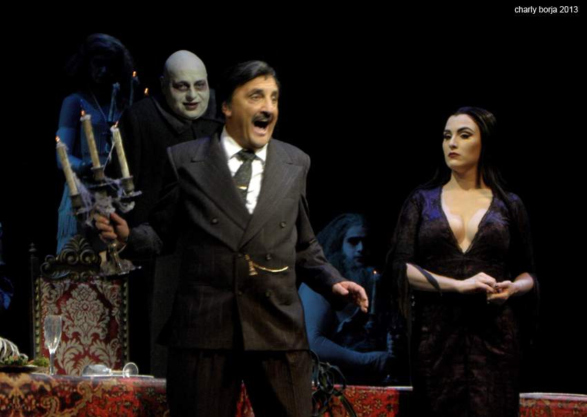 Capítulo aparte merecen las excelentes actuaciones de Gabriel Goity como Homero Addams el bonachón y jefe de la alocada Familia Addams, y Santiago Ríos componiendo un tío Lucas de excepción, a ellos se acopla es resto del elenco con una versátil Julieta Díaz como Morticia Addams, que actúa, baila y canta con pasión, Laura Natalia Esquivel como Merlina Addams, Gaby Goldberg como la desopilante Abuela y las rebelaciones de la obra, el niño prodigio Kevin Tomás La Bella como Pericles Addams y Marcelo Albamonte como Largo, todos ellos munidos de muchas pilas para divertir a grandes y chicos en las bizarras y alocadas situaciones que viven minuto a minuto los integrantes de esta simpática familia.