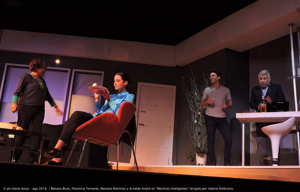 La opinión de charly borja - agosto 2018 © Divertida comedia con una dirección ágil de Valeria Ambrosio toda una especialista en el manejo de actores, una obra con un Mariano Martínez que demuestra a las claras con su actuación que es mucho más que un metro sexual, una Florencia Torrente quien enseguida nos hace pensar que “de tal palo…. “ Ya que heredó las dotes actorales de Araceli González su madre, y con la presencia de dos pesos pesados de la actuación, don Arnaldo André y doña Betiana Blum quienes cuentan con un tonelaje de obras interpretadas y una experiencia total sobre todo en el tema comedias.