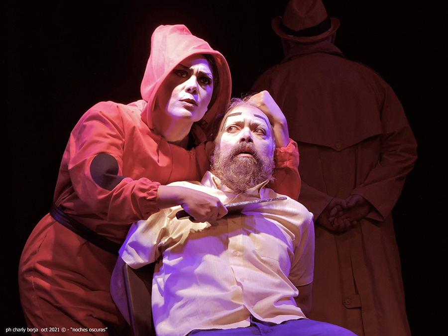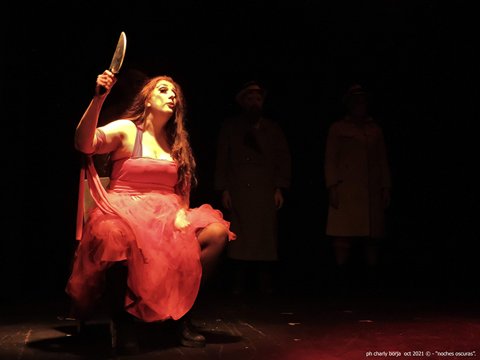 Excelentes el maquillaje y el vestuario, que junto a la iluminación y al sonido llevan al espectador a adentrarse en esas inquietantes historias que nos cuenta “Noches Oscuras”.