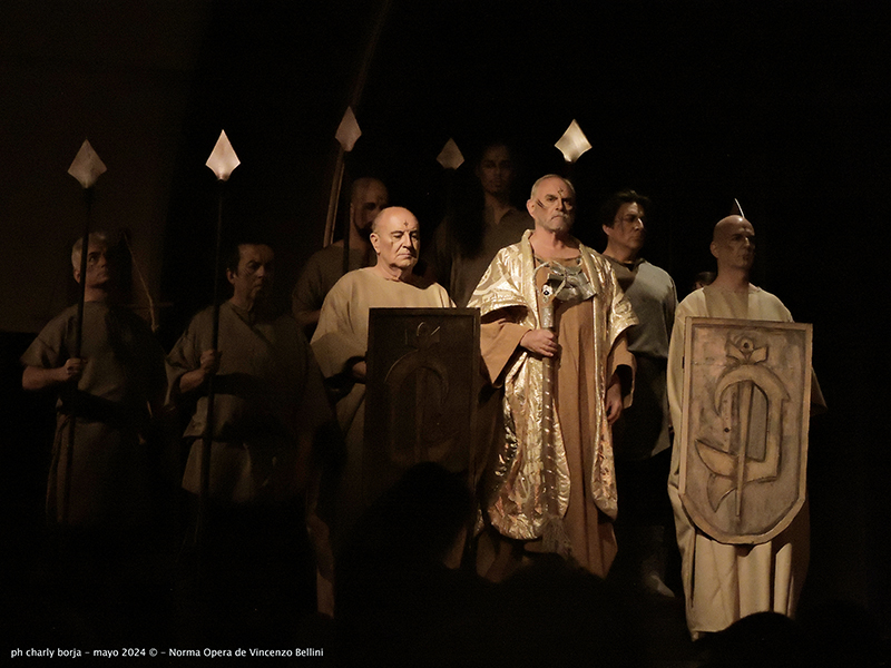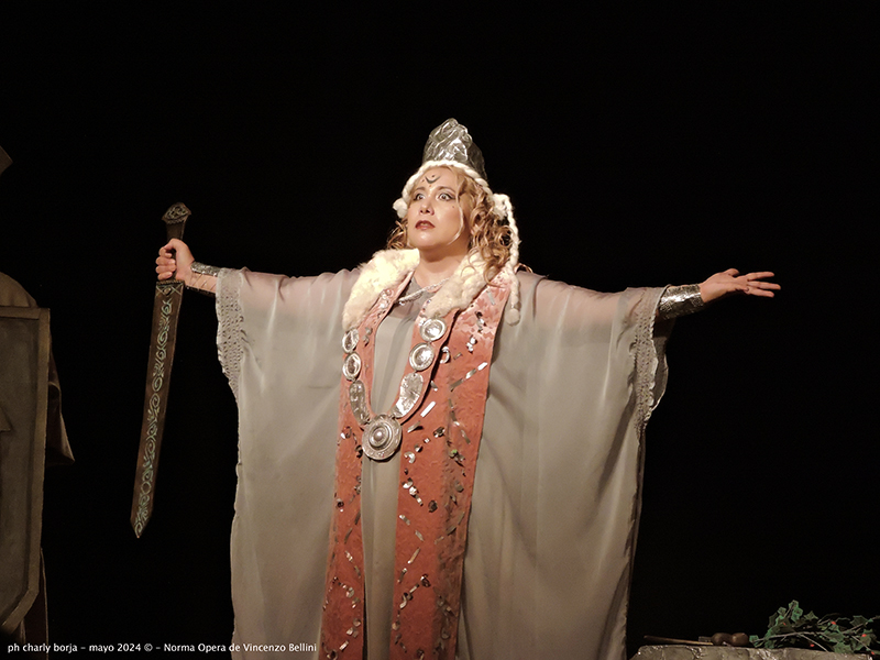La opinión de charly Borja – mayo 2024 © Hemos asistido a un evento artístico de jerarquía en el Teatro Empire con la estética que lo caracteriza don Antonio Leiva (Regisseur) y Silvana D’Onofrio (Directora musical) dirigen al numeroso grupo de artistas que componen la Compañía Música en Escena. La Opera en 2 actos concentra su mirada en una época cruel en el que la infidelidad y la tración se pagaba con la muerte. La impecable dirección de actores amalgaman los cuadros grupales con los solistas de manera fluída y plástica. Destacamos el histrionismo escénico de las sopranos y de los tenores, a saber, la poderosa voz de Susana Palomeque Flores interpretando a Norma y la ductilidad de Lídice Robinson interpretando a Adalgisa, y de Germán Polón como Pollione. La directora musical Silvana D’Onofrio muestra en su paleta artística musical toda su vigorosa conducción de una orquesta que suena imponente. Los rubros técnicos, como vestuario, maquillaje, peinados, denotan gran producción, la iluminación con sus claros-oscuros reflejan la mirada de Antonio Leiva en acertada sutileza. Muy recomendable espectáculo, una digna puesta de Norma la inmortal obra de Vincenzo Bellini.