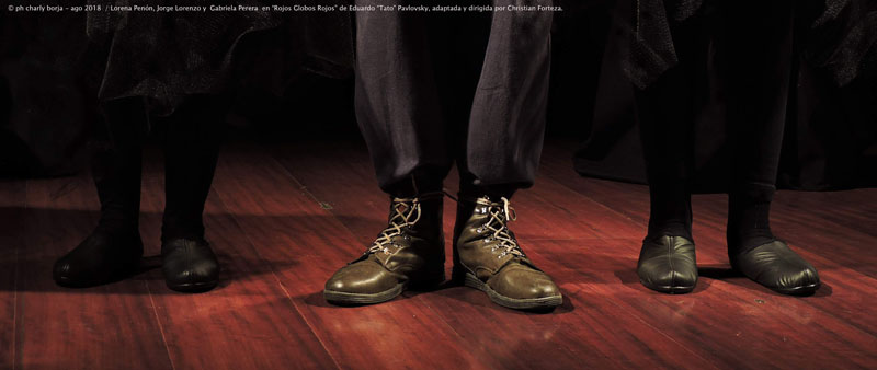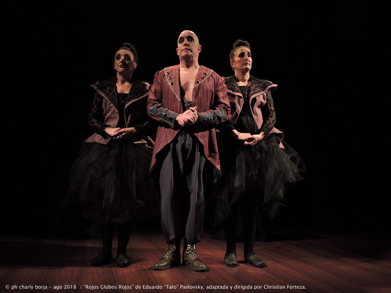 “Rojos Globos Rojos”, escrita por Eduardo "Tato" Pavlovsky adaptada y dirigida por Christian Forteza, en una versión minimalista de la obra muy bien interpretada por Jorge Lorenzo como el Cardenal y Lorena Penón y Gabriela Perera como Las Popis. En esta versión totalmente despojada la prioridad la tienen las palabras, los gestos las miradas, que van fluyendo con fuerza y dramatismo solidifican la idea de lucha y resistencia que es el eje central del pensamiento de Pavlovsky para esta pieza teatral, un mérito de su joven director Christian Forteza para ir al grano en lo que se dice en una obra de no mucha duración pero sí de gran efectividad en su claro mensaje Universal.