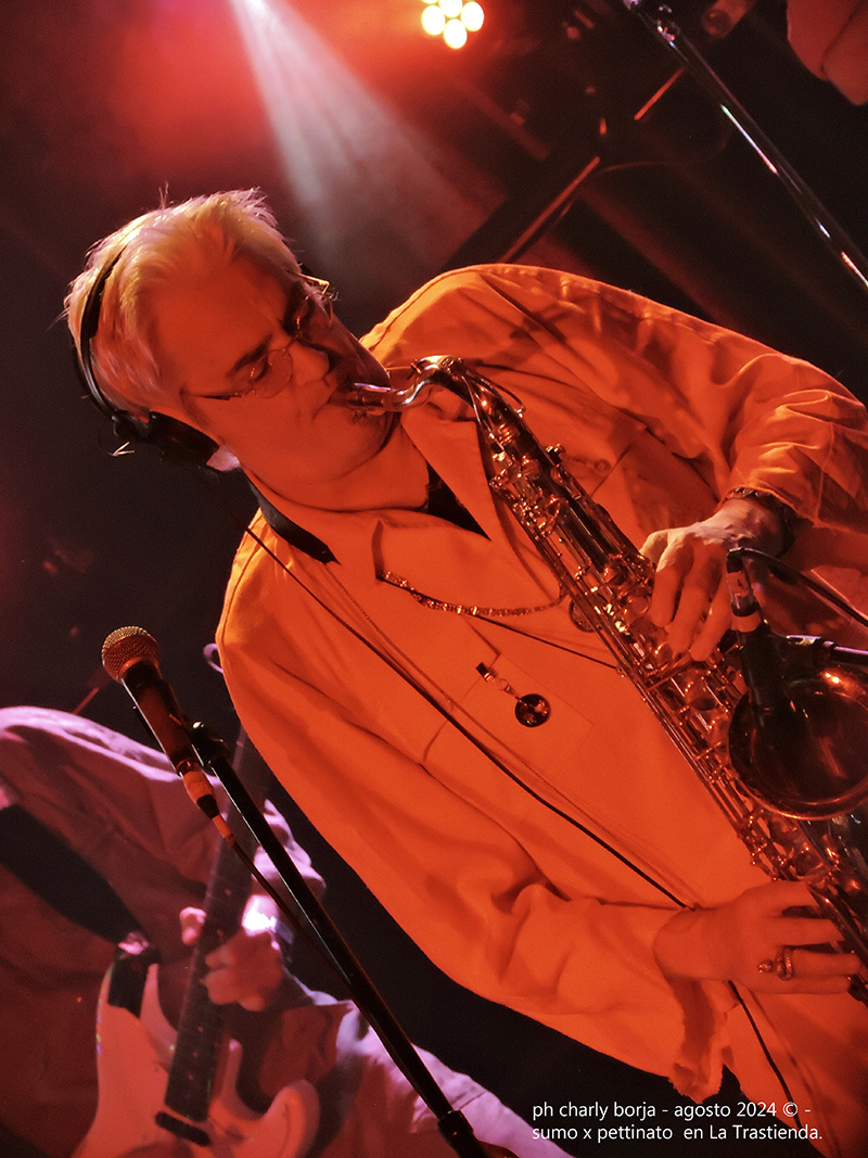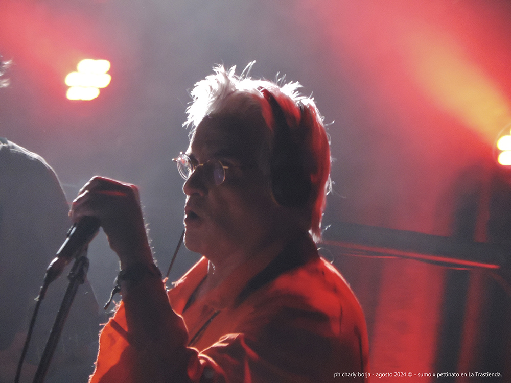 Claro está que habiendo pasado los años el sonido está renovado pero los temas siguen tan vibrantes como en aquellos tiempos, Pettinato hace gala de su histrionismo escénico tocando guitarra eléctrica y su inseparable saxo instrumento este del cual tiene espertiz, no es fácil cantar los temas que hiciera famoso el frontman Prodan, pero don Petti sale airoso en su show llegando hasta enloquecer a algunos fans de Sumo.