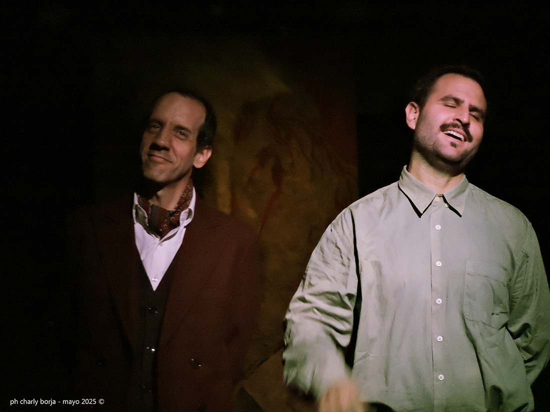 Es una sátira sobre el deseo de “pertenecer”, de formar parte de una tribu, a cualquier precio. Se abre un diálogo, revelando el absurdo en boca de estos dos tipos. Una pieza diabólica y corrosiva que ancla su mirada sobre la polarización y el abuso en la humanidad.
