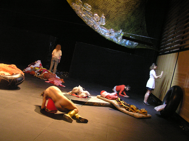 cuerpos de las performers y del corrimiento de los objetos que ellas