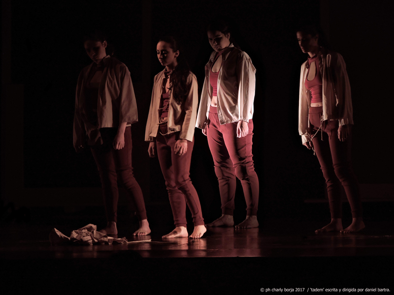 Muy buenas por su expresividad y frescura las performances de las bailarinas Belén Cortínez, María Laura Moltoni, Yanina Cáceres, Camila Pereyra y María Fernanda Mascaró. “TADEM” una obra de alta estética con la fortaleza de la belleza en su poesía visual y auditiva para no perdérsela.