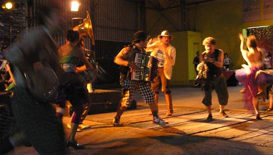 El final del show, apoteótico, decenas y decenas de jóvenes y no tan jóvenes, conformando una gran caravana, bailan y se deleitan con la música, pidiendo a gritos más y más bices. Se escucharon chacareras, temas judíos, árabes, griegos, serbios, en fin, muy buenos arreglos con muchos vientos, el acordeón que lleva la batuta junto al banjo y a bailar se ha dicho bajo los acordes de esta bizarra y joven agrupación quien además luce un exótico vestuario que le hace muy bien a la puesta en escena en general.