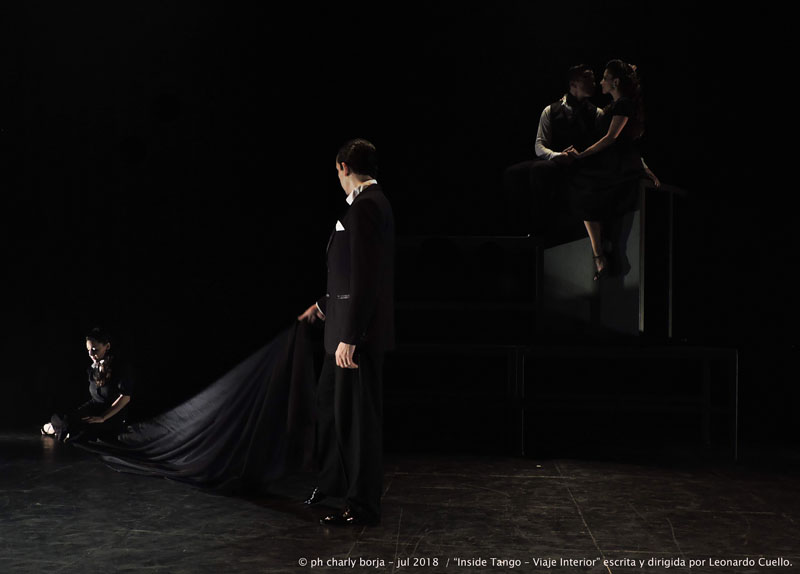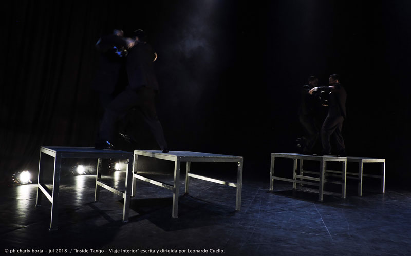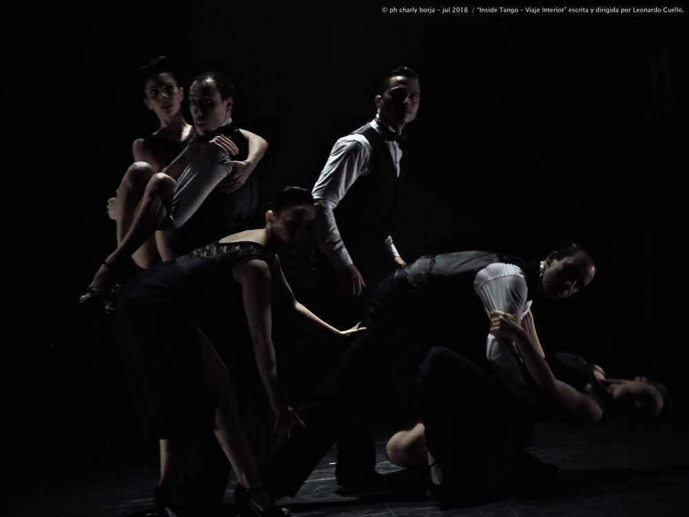 La opinión de charly borja - julio 2018 © Las luces tenues, la perspectiva, algunos silencios, geométricas estructuras y un impecable vestuario y peinados son los fuertes soportes con los que cuenta la impecable Compañía de Leonardo Cuello para contar la poética historia de “Inside Tango – viaje interior”. Con sugestivas coreografías se van presentando diversos cuadros de alta estética visual en donde cada una de las parejas de baile tiene su brillo propio al igual que cuando lo hacen en forma grupal.