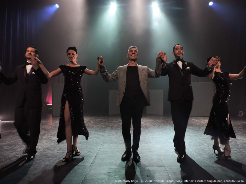 La opinión de charly borja - julio 2018 © Las luces tenues, la perspectiva, algunos silencios, geométricas estructuras y un impecable vestuario y peinados son los fuertes soportes con los que cuenta la impecable Compañía de Leonardo Cuello para contar la poética historia de “Inside Tango – viaje interior”. Con sugestivas coreografías se van presentando diversos cuadros de alta estética visual en donde cada una de las parejas de baile tiene su brillo propio al igual que cuando lo hacen en forma grupal.